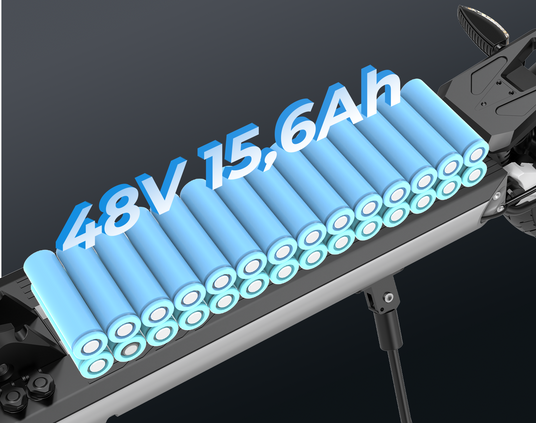 Der 48V/15,6Ah Hochleistungsakku ermöglicht eine beeindruckende Reichweite von bis zu 70 km pro Ladung. Einzigartig in dieser Klasse: Über das intelligente Dual-Ladesystem lässt sich die Ladezeit bei Nutzung von zwei Adaptern auf nur 3–4 Stunden halbieren – für maximale Flexibilität und minimale Standzeiten.